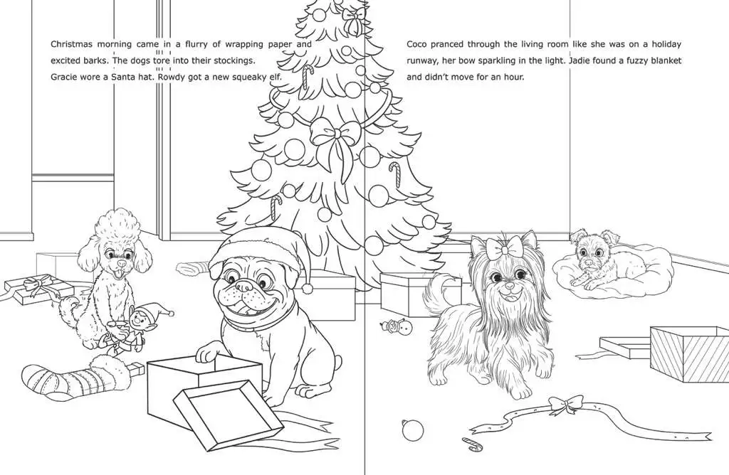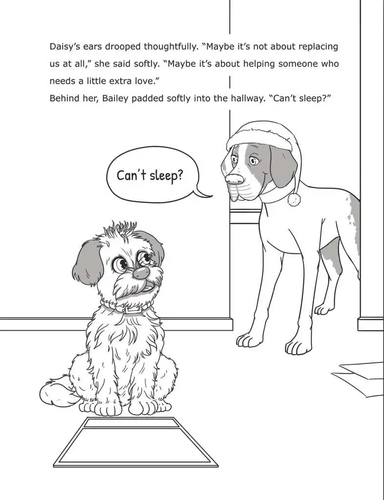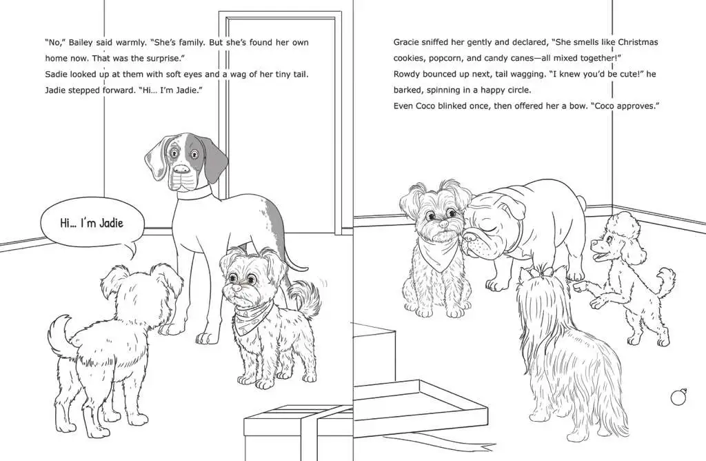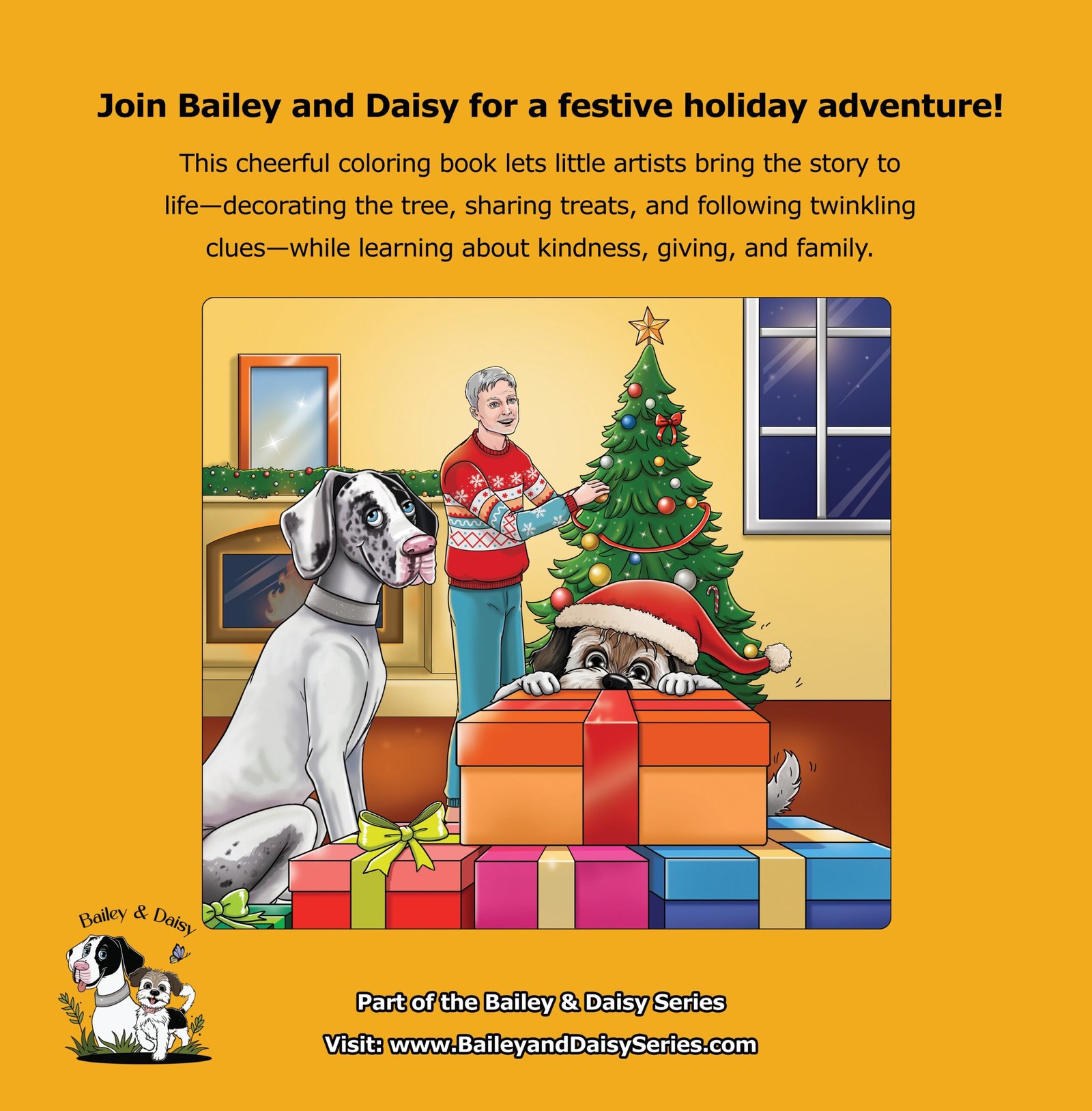 A companion coloring book with 40+ one-sided scenes directly from the holiday story. Bold, simple outlines make it easy for ages 4–6 to color along as Bailey (calm Great Dane) and Daisy (curious terrier mix) decorate, follow clues, and celebrate a festive surprise. Cheerful pages encourage creativity, kindness, and family togetherness all season long.